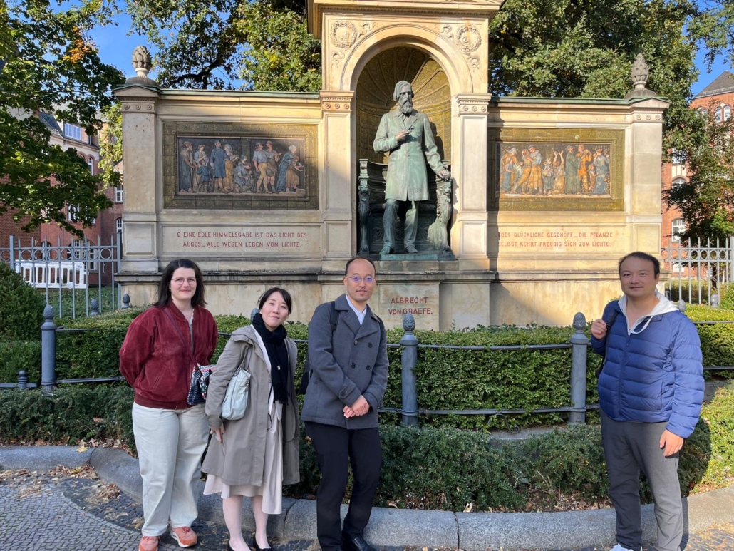 Weiter ging es zum Denkmal für den berühmten Augenarzt Albrecht von Graefe. Die Gastgeber gaben den japanischen Kollegen einen Einblick, wie Graefe im 19. Jahrhundert die Augenheilkunde revolutionierte und innovative Operationstechniken entwickelte, die bis heute relevant sind. Die Ärzte aus Japan zollten diesem Pionier der Augenmedizin besonderen Respekt.